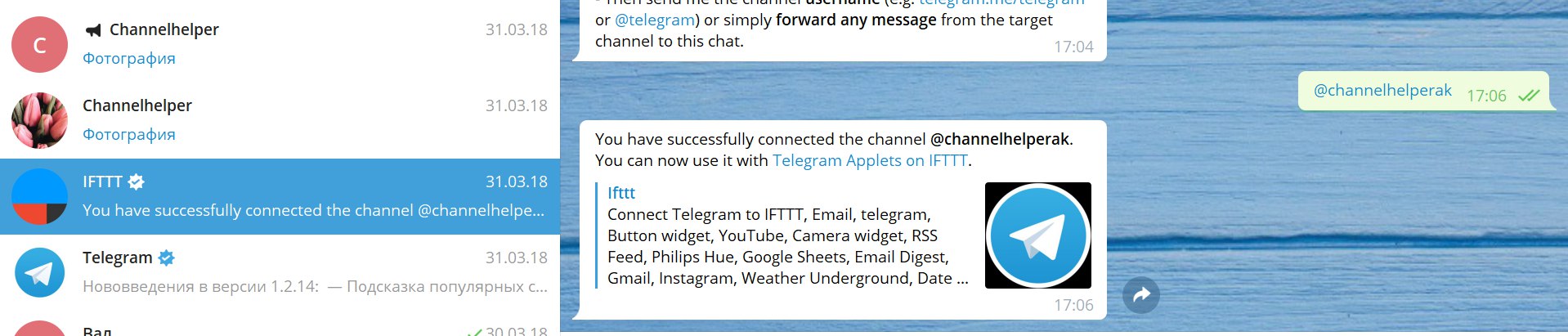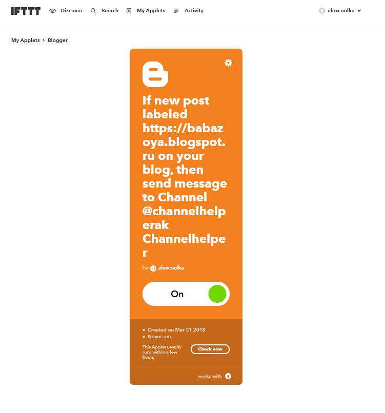 Скрин связи ifttt c каналом